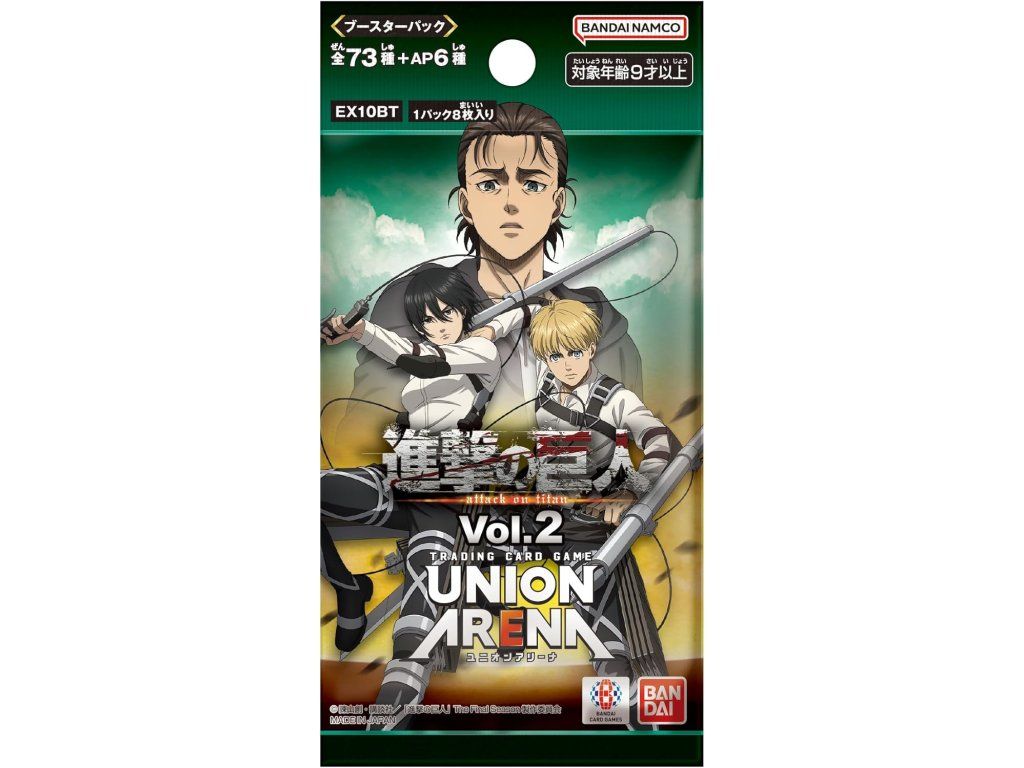 Booster box Attack on Titan Vol.2 (EX10BT) ze série Union Arena přináší karty inspirované světem populárního anime Attack on Titan. Druhý díl této edice rozšiřuje možnosti pro hráče i sběratele a obsahuje širokou škálu karet s různými raritami.